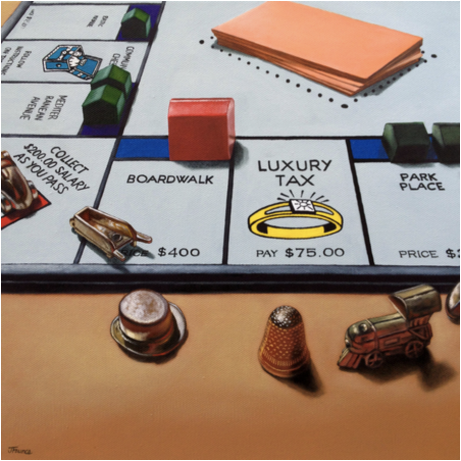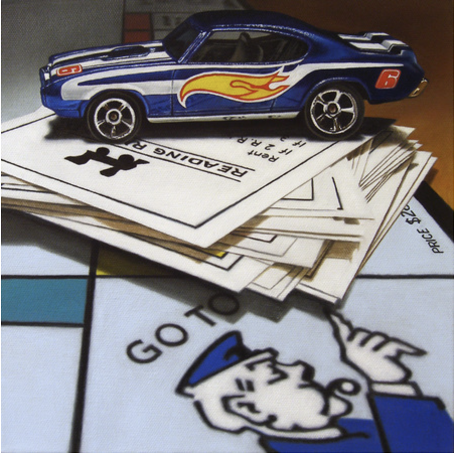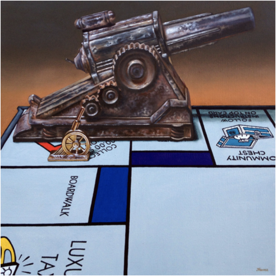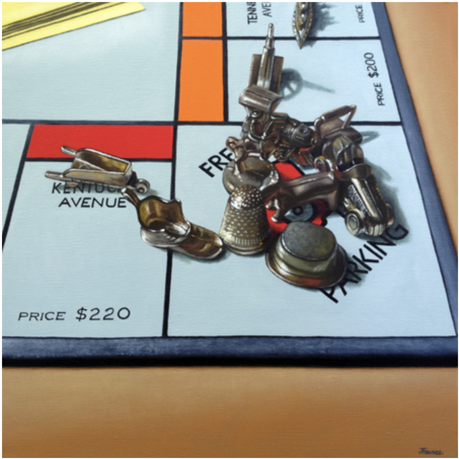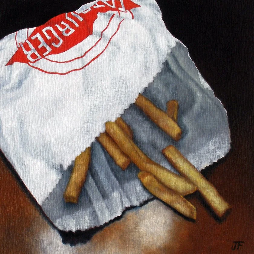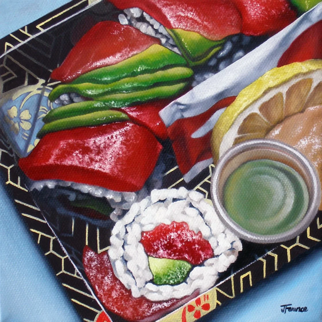 Jelaine Faunce (b. 1971) is a contemporary artist working in acrylics (formerly in oils). After graduating with a B.A. in Fine Art from University of Nevada at Las Vegas in 1996 Jelaine spent several years as a muralist before transitioning to work on canvas in 2003. Taking from the traditional training she received at university Jelaine's initial focus was on directly representational Realism and the Still Life genre. It was in 2012 that she began her current focus - to experiment with story-telling in her work with humorous nostalgic and imaginative themes dominating. At this time she also began to experiment with combining artistic styles such as realism mixed with illustration - a trend she presently continues.